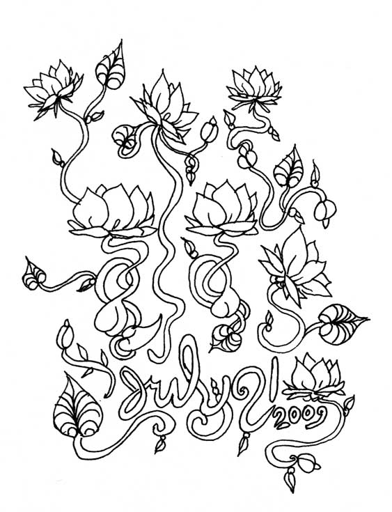 I decided that trying to find groups of people in the middle of a bedroom suburb in a small town during the work week was counter productive. I am back to squiggles. Since ropes and masses was a previous bunch of lessons, I attempted to add an Art Nouveau feel to this doodle with floral thematics.